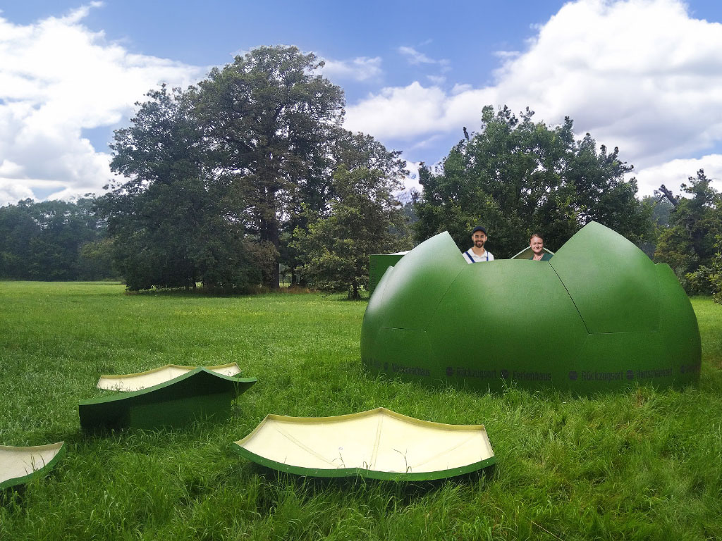 Mit einem Durchmesser von 5,3m und einer Höhe von 3,0m wird eine geschützte Fläche von 20,5m2 bei einem vergleichsweise leichten Gesamtgewicht von 270kg erreicht, die individuell genutzt werden kann.