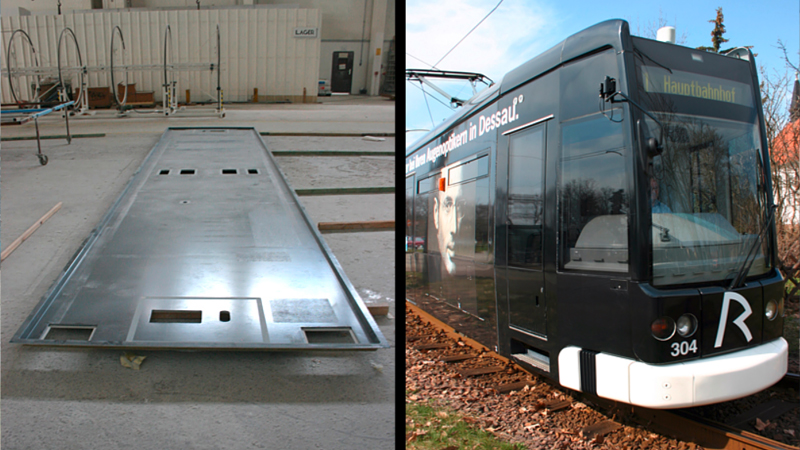 Im Schienenfahrzeugbau zählen Produkte aus faserverstärkten Kunststoffen zur größten und vielseitigsten Gruppe. Dazu gehören Kopfverkleidungen und selbsttragende Bauteile aus dem Leichtbauwerkstoff. Bislang wurden Kopfstücke bis zu einer Größe von 4200mm x 2840mm x 2800mm (L x B x H) hergestellt, z. B. Dächer für Straßenbahnen im Zweifolienvakuumverfahren. Innenverkleidungsteile und Bedienpulte gehören ebenfalls zum Produktionsprofil.